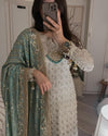 Delightful Sequence Embroidery Work Off White Color Anarkali Suit