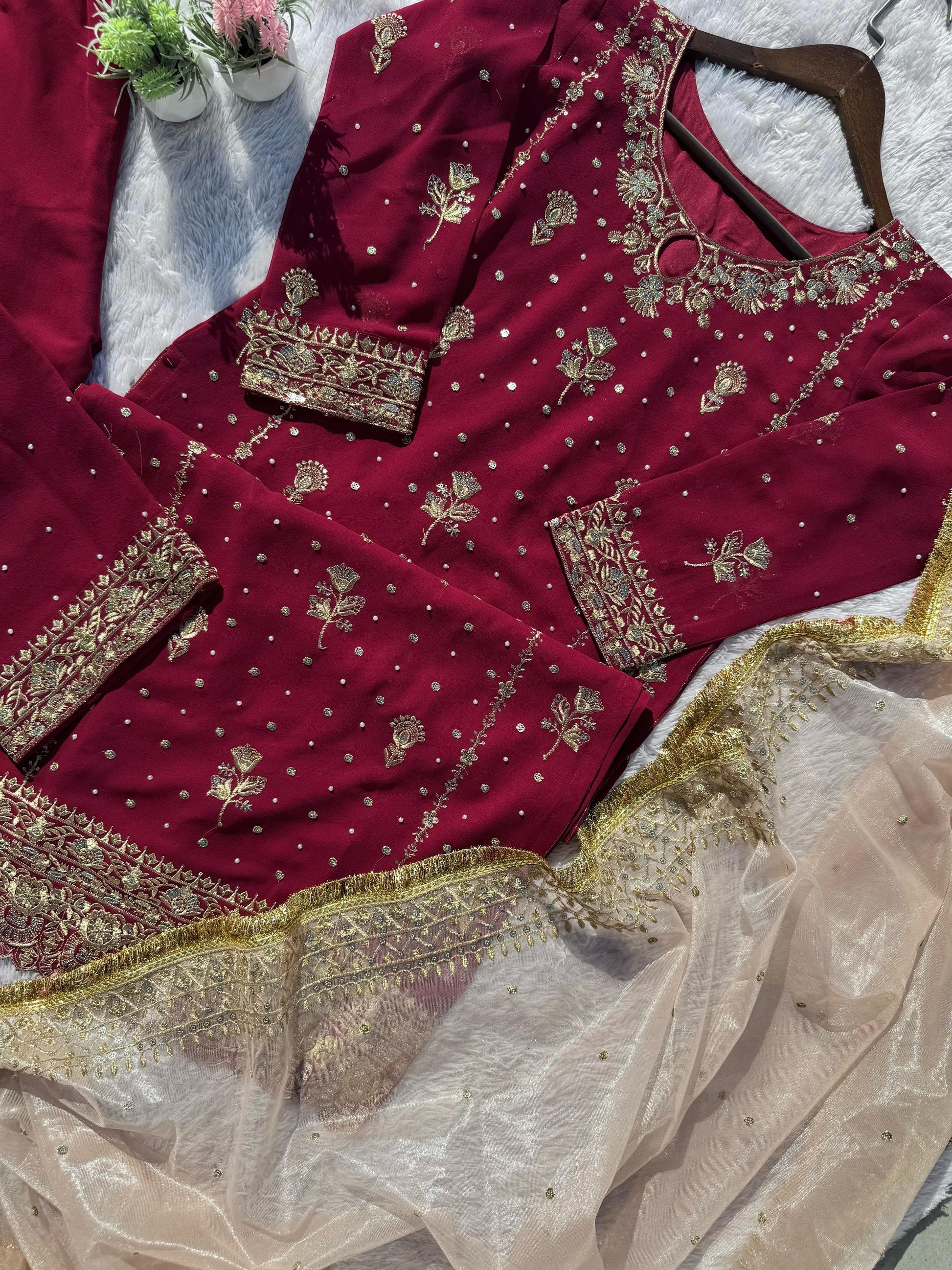 Silver Gold Net Sequence Embroidery Work With Border Heavy Lace Work Dupatta (2.2 Mtr)