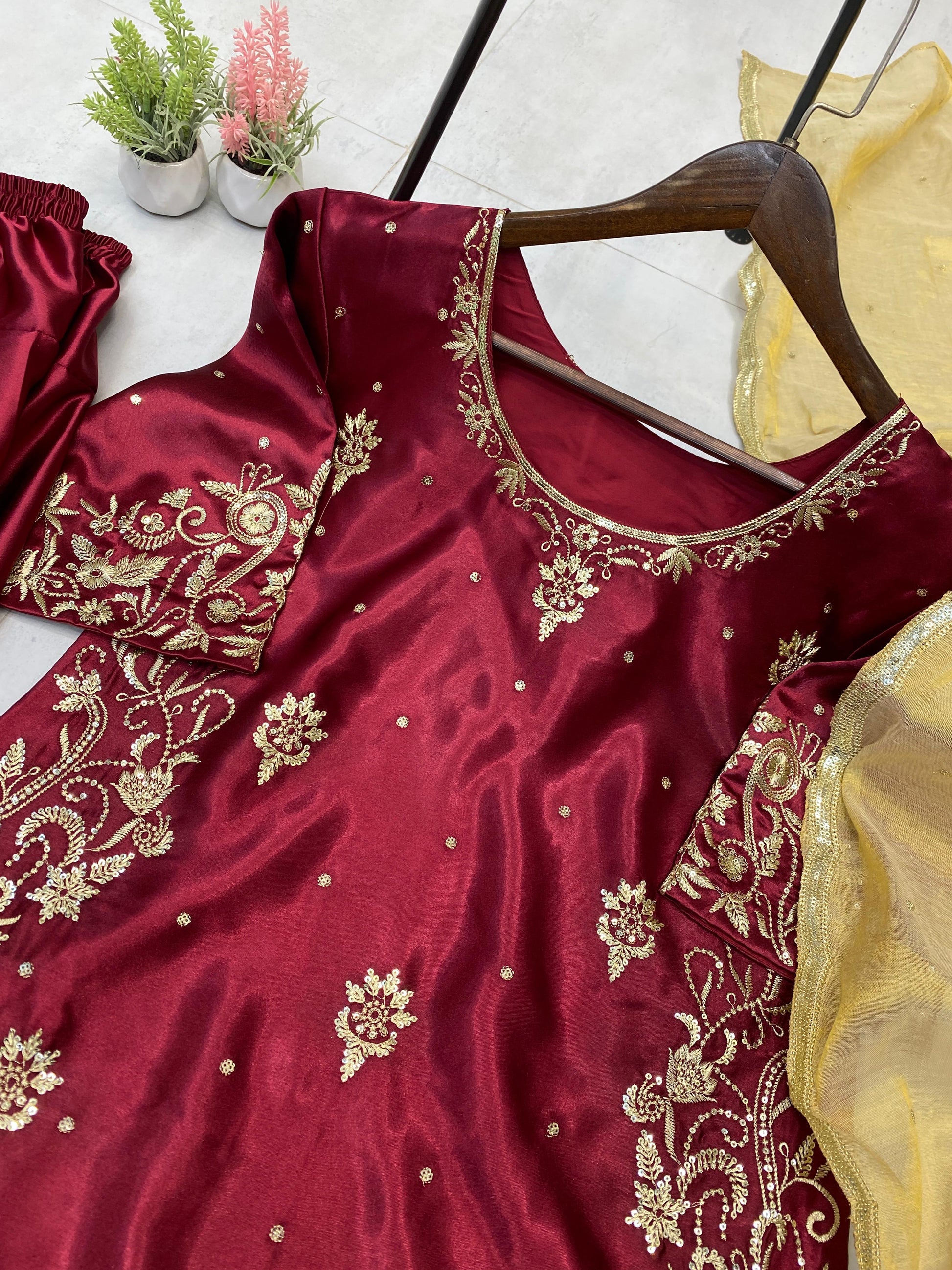 stylish maroon satin sequence work salwar suit
