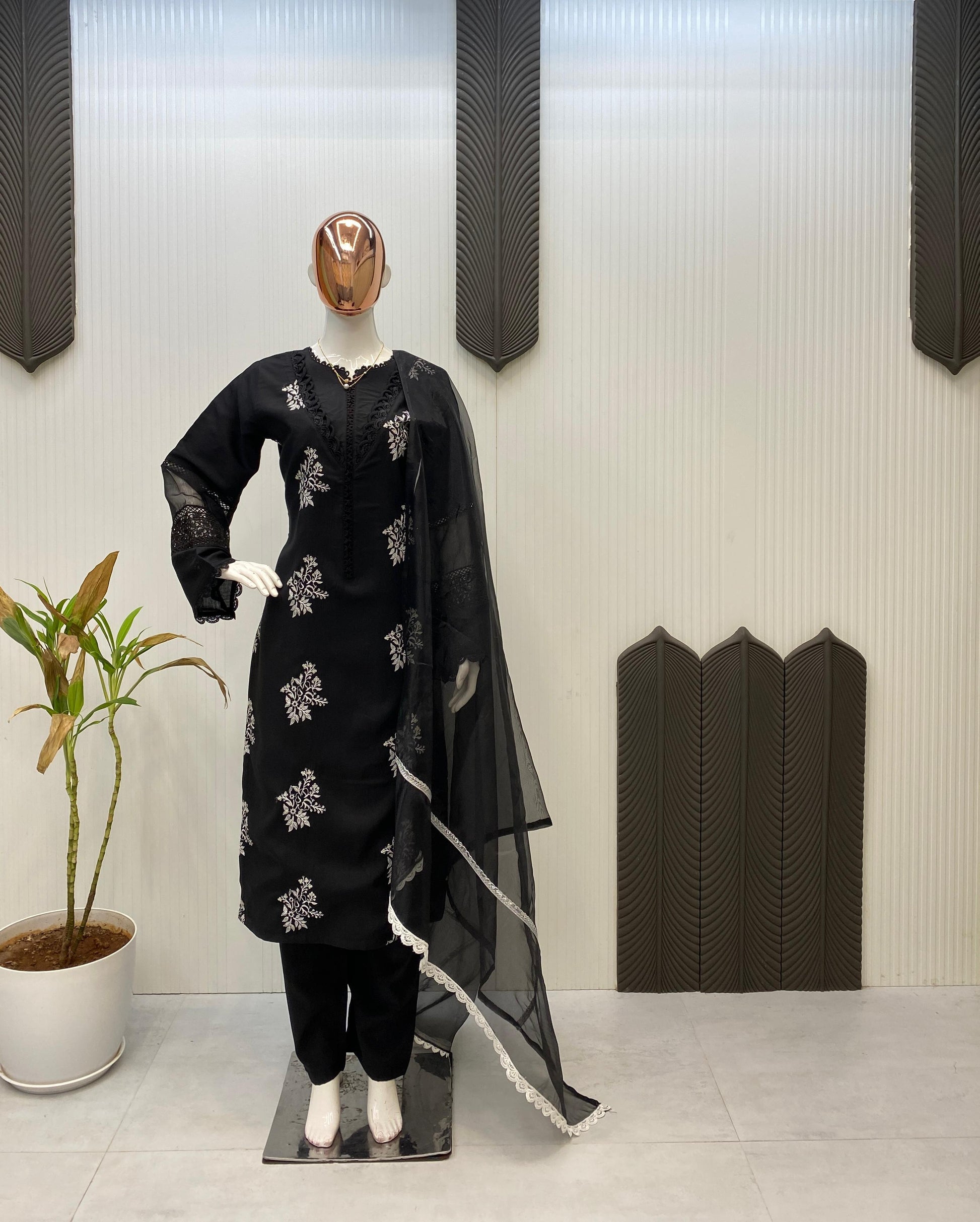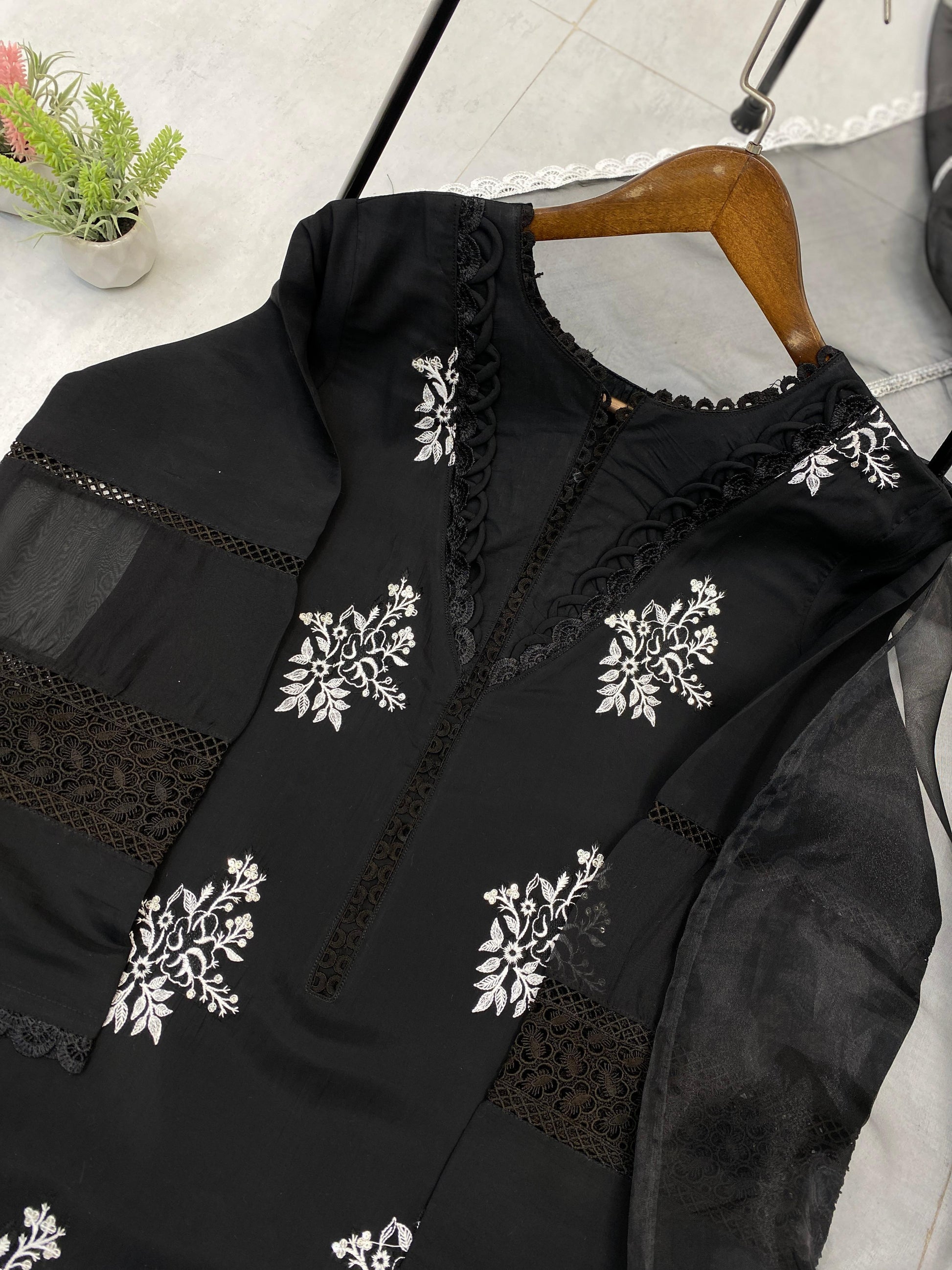 #work: Embroidery Work On Front Side •gpo Lace And Soft Organza In Sleeves Design