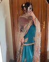 unique chinon embroidery work sky blue color sharara suit